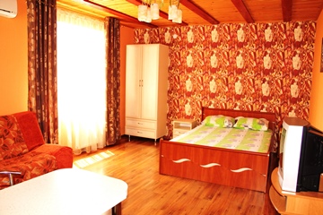 Однокомнатный коттедж для отдыха с отдельным уютным двориком, расположен на 2 этаже. Жильё находится по адресу поселок Новый Свет в Крыму. До моря 10мин. Есть место для мангала. Возможно размещение на отдых 2-3 человека. Цена указана за отдых 2 человек. Дополнительное место: дети до 10 лет - 300 руб., дети старше 10 лет и взрослые - 500 руб.. В номере двуспальная кровать и диван. Потолки сделаны из натурального дерева. Номер в коттедже оснащен: кондиционер, телевизор, (кабельное ТВ), Wi Fi, микроволновка, холодильник, санузел совмещенный (умывальник, душевая, унитаз, фен), холодная и горячая вода круглосуточно, постель, полотенца (уборка и замена белья раз в 4-5 дней), кухня (газ. плита, вытяжка, посуда).