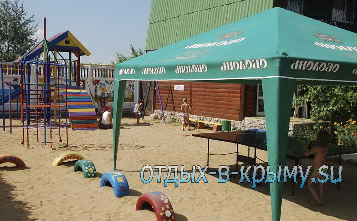 Детская площадка. Барбекю. Настольный теннис. Волейбольная площадка. Свой песочный пляж. Территория под охраной. Крым аренда коттеджа у моря на берегу Золотой пляж Феодосия.