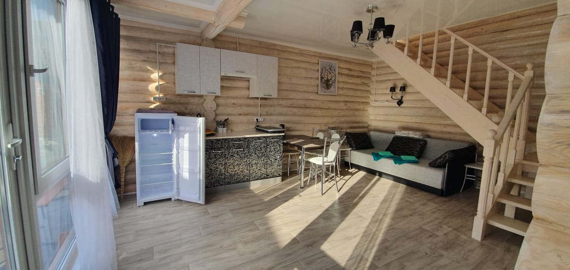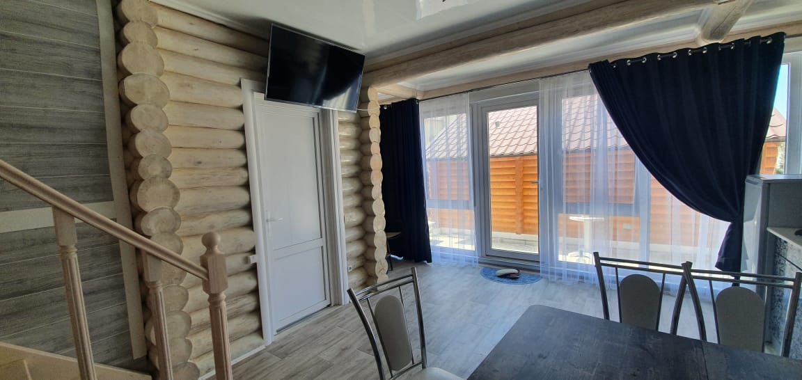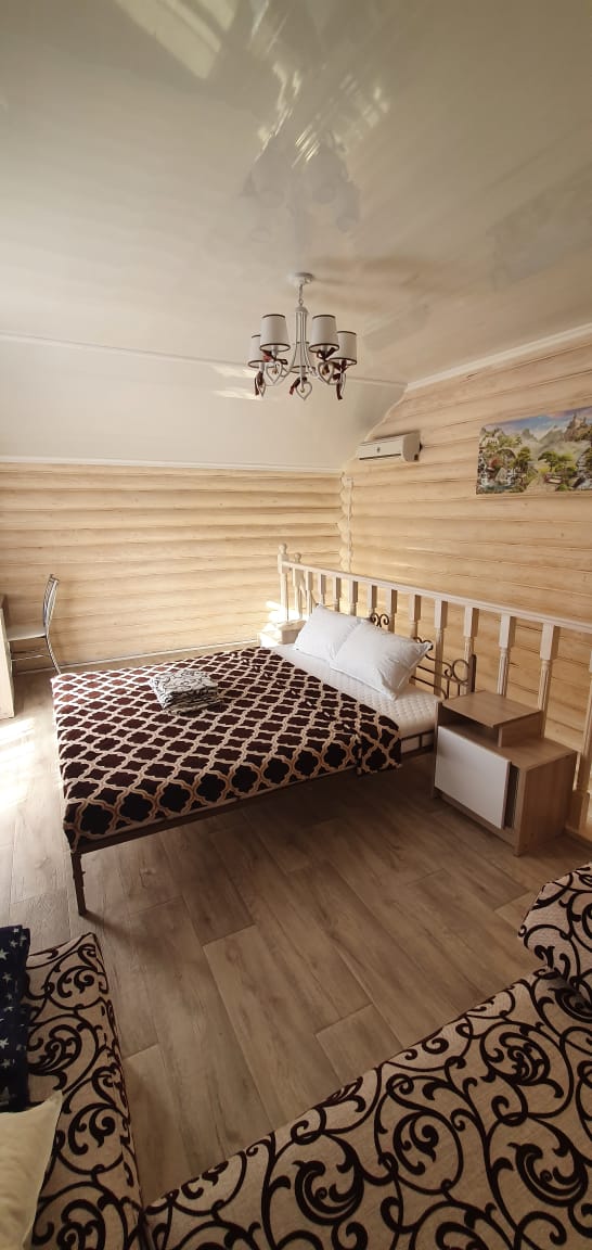 Красивый деревянный эко дом в 100м от моря. 2 комнаты 1 (спальня) для 6 чел. (+1 еврораскладушка), оборудованная кухня. Двор общий. Есть мангальная зона. Пляж широкий немноголюдный, море чистое, неглубоко. Идеальное место для отдыха с детьми.