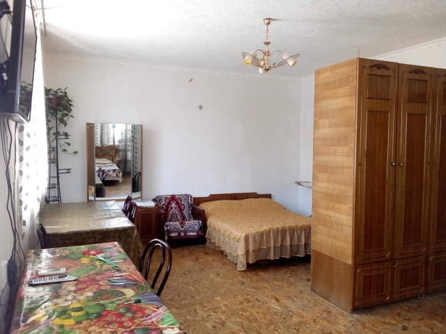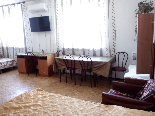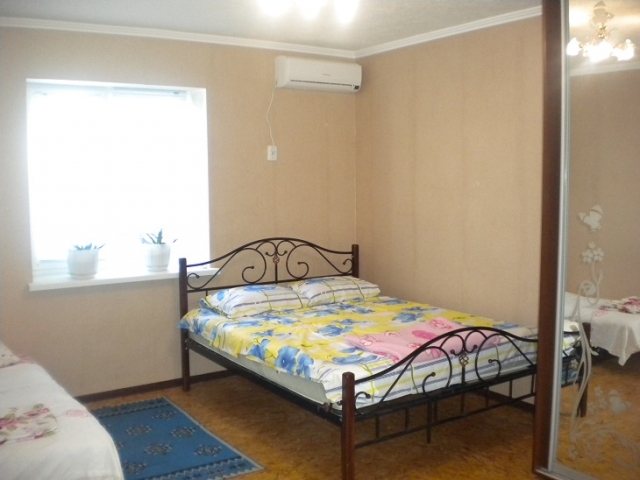 В доме 4 раздельных комнаты непроходимые, кухня, два санузла с душами на 1 и 2 этаже. Общая вместительность 15 чел. (максимально - до 15 мест). В каждой комнате установлен кондиционер. Во дворе – большой топчан, мангал.казан для приготовление плова на костре. Двор только для этого дома. Санузел с душем, ванная – внутри дома. Во дворе для бесплатной парковки вмещаются 4 машины. До моря 15 мин пешком.
