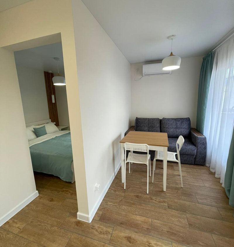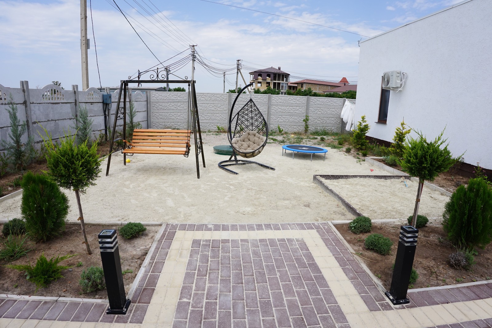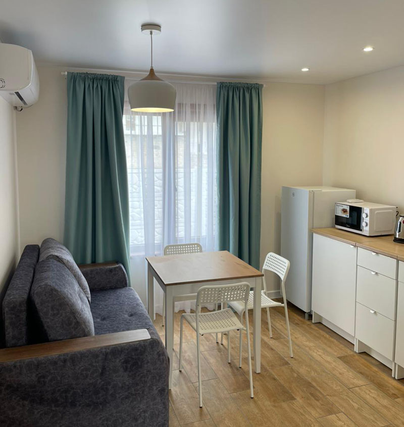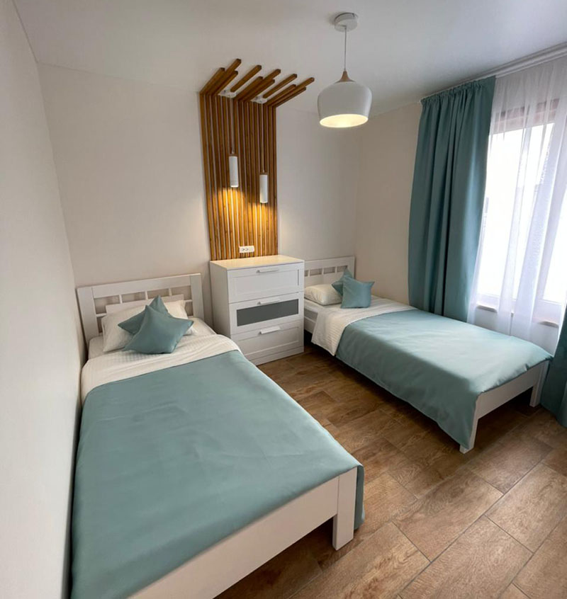 Дом возле моря Заозёрное Евпатория оборудован всем для комфортного отдыха летом. 1 или 2 отдельные спальни и диван на кухне. Кухня оснащена всем для самостоятельного приготовления. В общем дворе есть зона барбекю, детская площадка и автостоянка. До берега моря 400м, пляж песчаный, море мелкое, чистое и тёплое. Рядом есть кафе, магазины, небольшие. Прекрасный современный домик и неглубокий песчаный пляж будет отличным местом отдыха особенно с детьми.