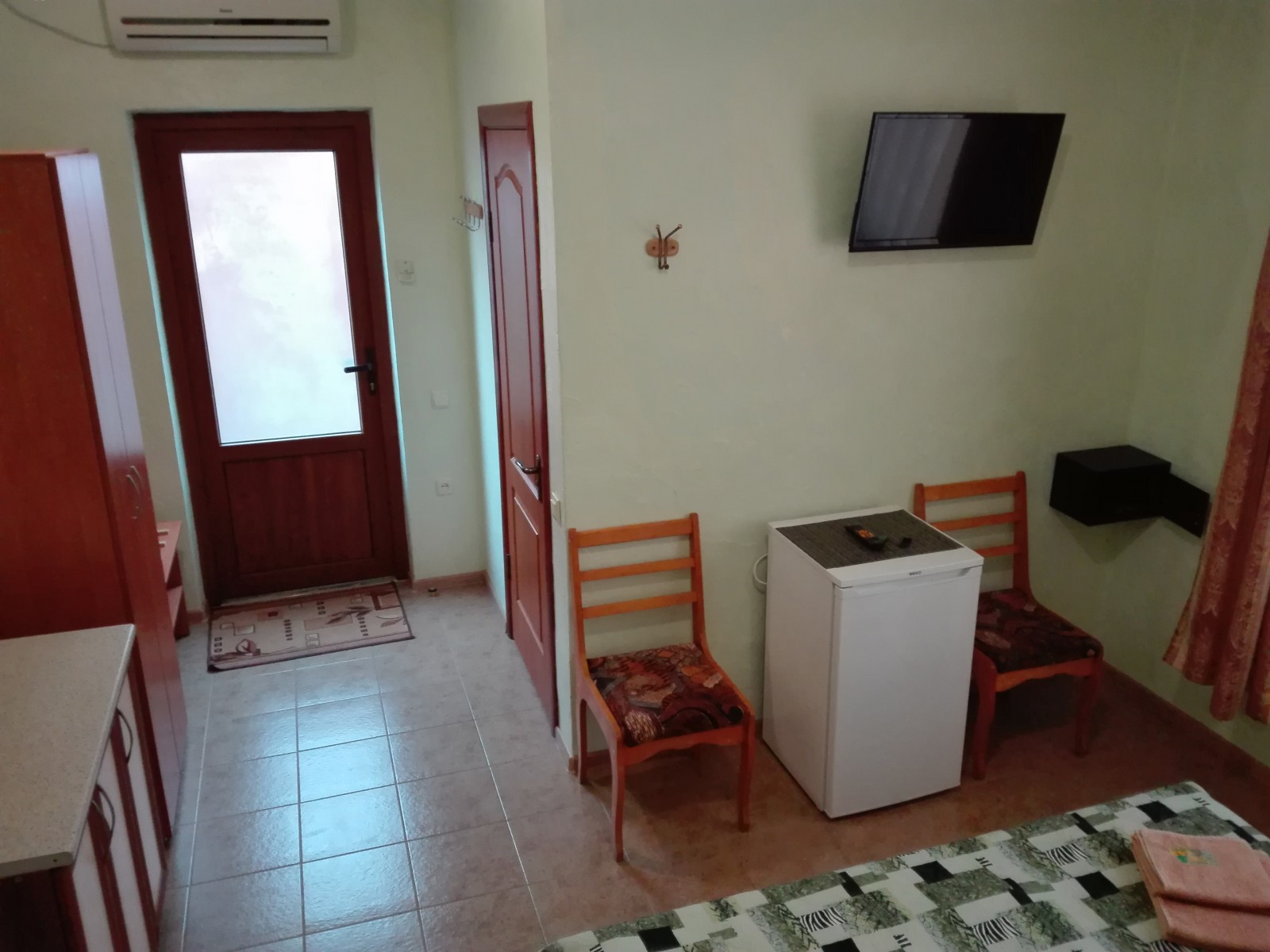 Домик у моря Крым Новый Свет на 3 чел. 1 комнатный, до моря 150м. Кухни нет, есть холодильник и эл чайник, посуда. автостоянка, есть 3 разовое питание по желанию. Детская площадка, зона барбекю.