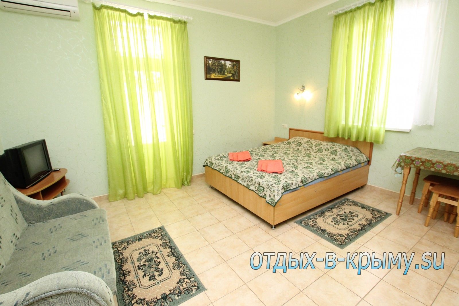 Период 01.05- 31.05 01.06- 14.06 15.06- 30.06 01.07- 31.08 01.09- 20.09 21.09- 30.09 01.10- 31.10 Однокомнатный номер с кухней, 2-4 местный 1800 2300 2500 3500 2800 2000 1500 Однокомнатный номер с общей кухней, 2 местный 1500 1800 2000 2800 2200 1700 1200 Двухкомнатные номера эллинга в крыму