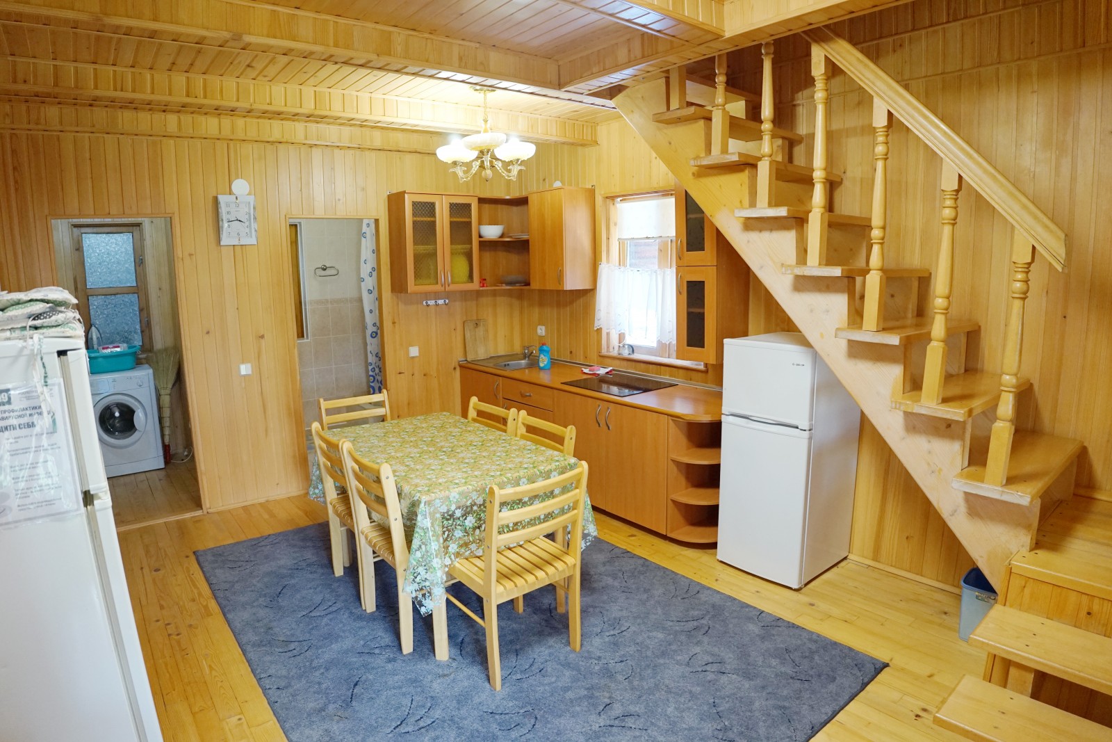 На 1 этаже расположена кухня, санузел с душевой кабиной, большая спальня (кондиционер).