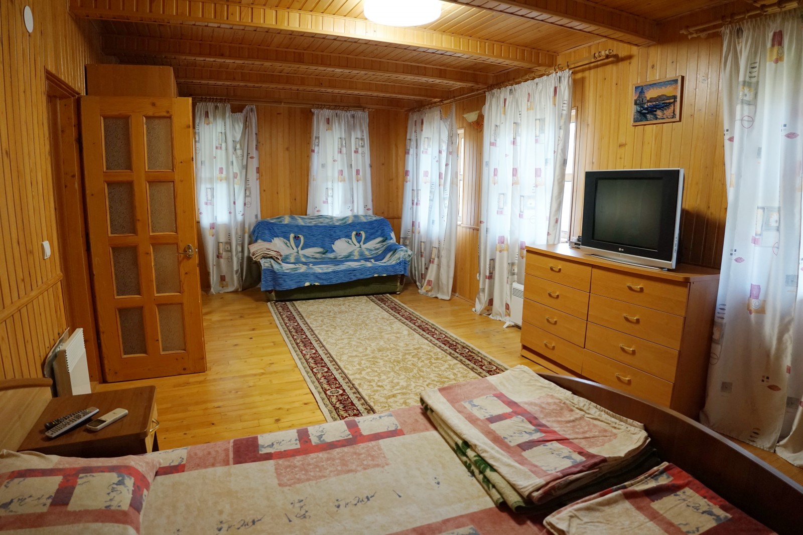 Спальные места: 3 двуспальные кровати, 1 раскладной диван, 2 односпальные кровати.