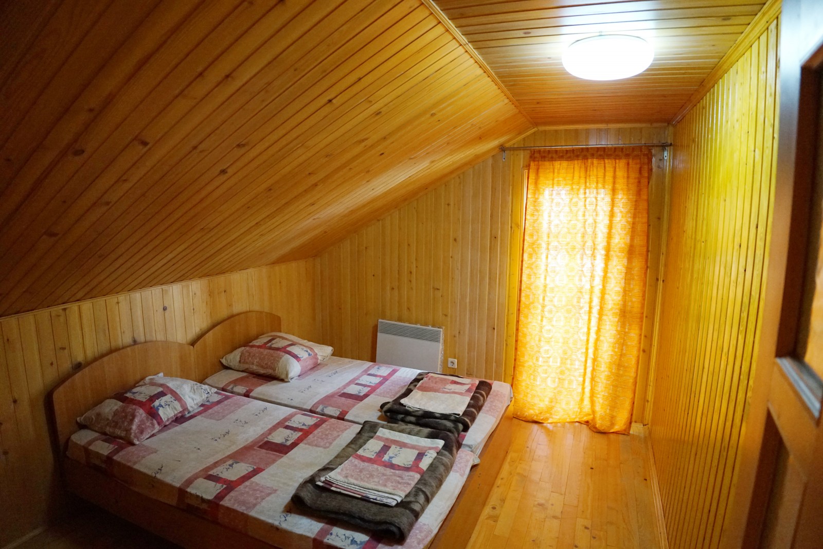 На 2 этаже - 2 спальни с выходом на 1 балкон (в одной кондиционер), санузел, 1 проходная комната с полуторной кроватью.