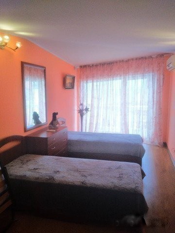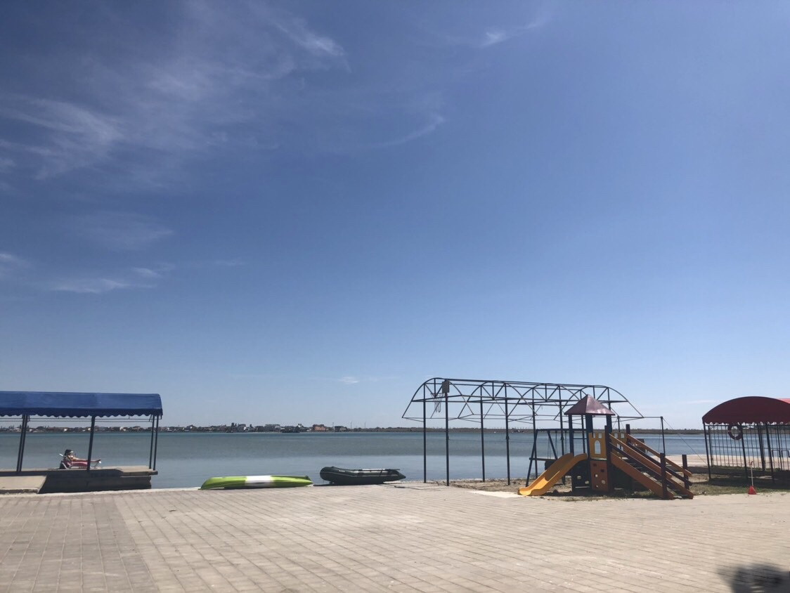 Снять дом у моря Евпатория Саки Поповка Мирный. Коттедж находится на косе между соленым заливом Донузлав и Черным морем. Один из лучших пляжей Крыма, широкий малолюдный пляж с белым песком и чистым неглубоким тёплым морем. До моря 150 метров, до соленого озера Донузлав 15 метров.