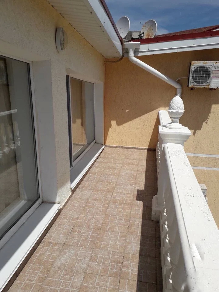 Берег моря песчаный, без примеси гальки и без глины, напротив коттеджа два больших накрытия и свои шезлонги.