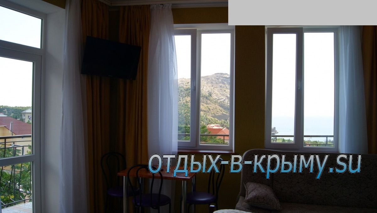 Номер находится на третем этаже, проживать могут (2+1доп.взрослый) или (2+2доп.детей). Жильё Крым Новый Свет отдых цены на 2022 год. Номер на 3 эт. с шикарным видом и балконом. Потрясающий вид на море. В номере есть душ, туалет, кухня со всей необходимой посудой, холодильник, газ.плита, ЖК тв, Wi-Fi, утюг, кондиционер, постоянная пресная горячая-холодная вода. Цена указана за проживание и отдых 2 человек.